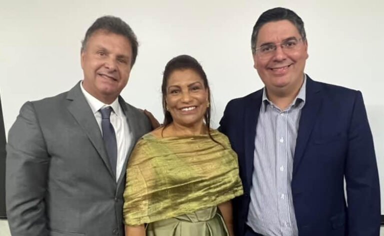 A presidente recém eleita da Diretoria Corporativa da Associação Beneficente de Campo Grande (ABCG), mantenedora do Hospital Santa Casa, Alir Terra Lima, acompanhada dos diretores Jary de Carvalho e Castro e Heitor Miguel Scheibeler.