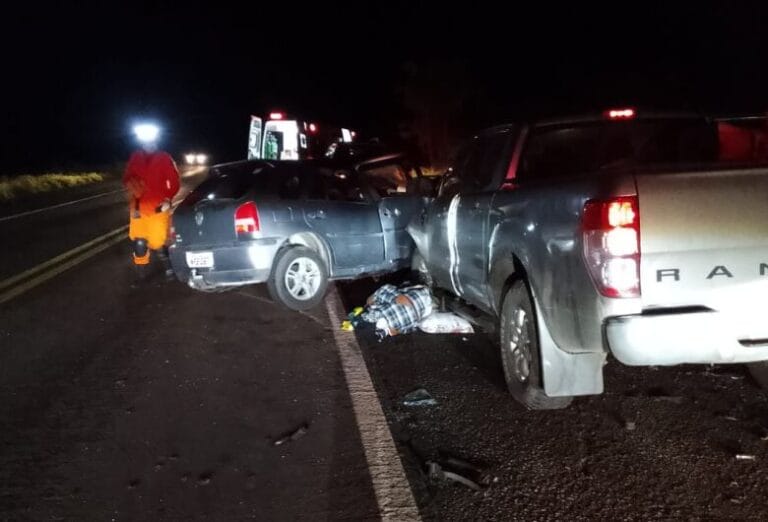 Um acidente envolvendo um automóvel VW Gol e uma caminhonete Ford Ranger resultou na morte de um casal de 75 anos na noite de segunda-feira,