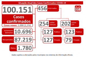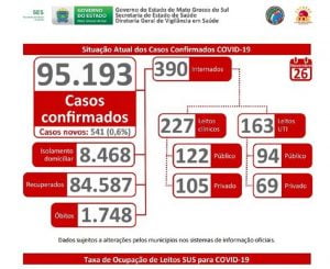 Boletim epidemiológico da Covid-19 divulgado nesta terça-feira (1°) revela que Mato Grosso do Sul registrou 1.090 casos da doença causada pelo novo coronavírus nas últimas 24 horas. A quantidade segue em alta, principalmente em Campo Grande. Do total de casos novos confirmados, 471 são da Capital. Outros 120 de Dourados.